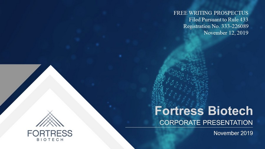 CORPORATE PRESENTATION November 2019 Fortress Biotech FREE WRITING PROSPECTUS Filed Pursuant to Rule 433 Registration No. 333 - 226089 November 12, 2019