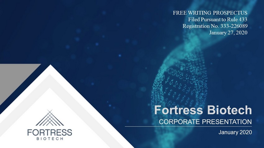 CORPORATE PRESENTATION January 2020 Fortress Biotech FREE WRITING PROSPECTUS Filed Pursuant to Rule 433 Registration No. 333 - 226089 January 27, 2020