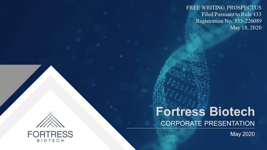 CORPORATE PRESENTATION May 2020 Fortress Biotech FREE WRITING PROSPECTUS Filed Pursuant to Rule 433 Registration No. 333 - 226089 May 18, 2020