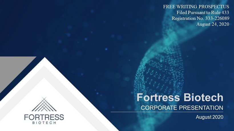 CORPORATE PRESENTATION August 2020 Fortress Biotech FREE WRITING PROSPECTUS Filed Pursuant to Rule 433 Registration No. 333 - 226089 August 24, 2020