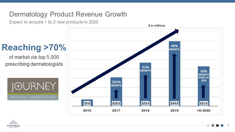 Dermatology Product Revenue Growth Expect to acquire 1 to 2 new products in 2020 Reaching >70% of market via top 5,000 prescribing dermatologists $3.6 $15.5 $23.4 $34.9 $21.4 2016 2017 2018 2019 1H 2020 $ in millions 331% GROWTH 51% GROWTH 49% GROWTH 50% GROWTH OVER 1H 2019 8