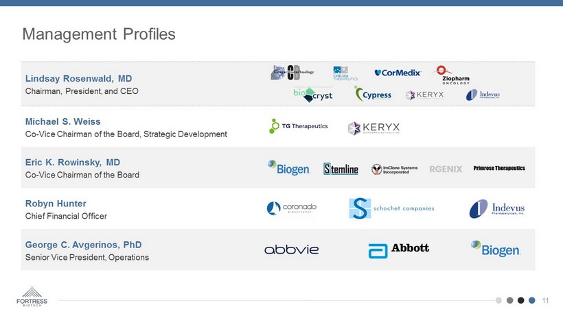 Lindsay Rosenwald, MD Chairman, President, and CEO Michael S. Weiss Co - Vice Chairman of the Board, Strategic Development Eric K. Rowinsky, MD Co - Vice Chairman of the Board Robyn Hunter Chief Financial Officer George C. Avgerinos, PhD Senior Vice President, Operations Management Profiles 11