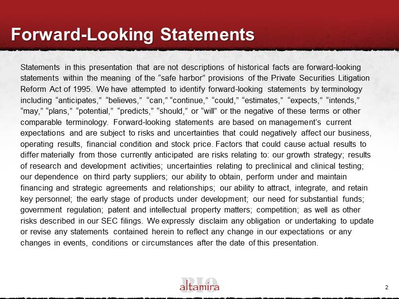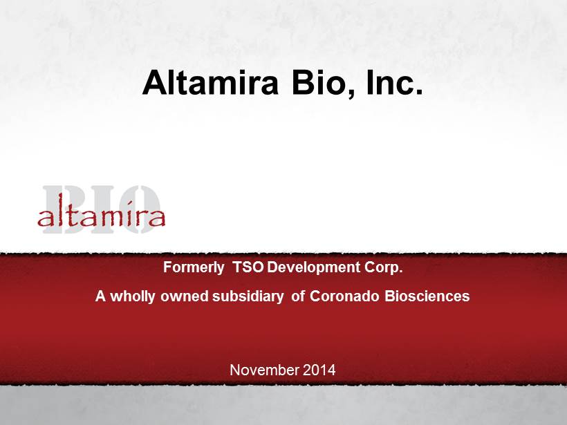 Altamira Bio, Inc. Formerly TSO Development Corp. A wholly owned subsidiary of Coronado Biosciences November 2014