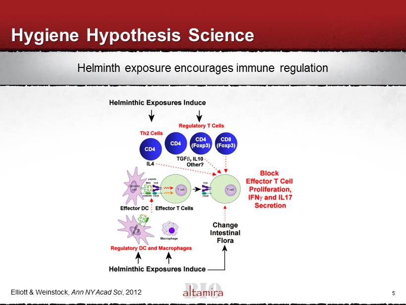 Hygiene Hypothesis Science 5 Helminth exposure encourages immune regulation Elliott & Weinstock , Ann NY Acad Sci , 2012