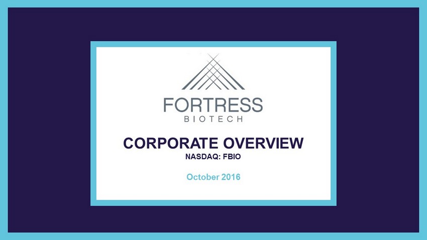 CORPORATE OVERVIEW NASDAQ : FBIO October 2016