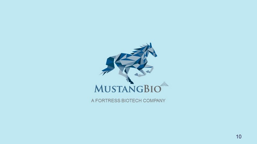 PIPELINE PRODUCTS PRODUCT CANDIDATE COMPANY STAGE OF DEVELOPMENT Preclinical Phase I Phase II Phase III Commercial ManNAc (GNE Myopathy) Escala Therapeutics ManNAc (Nephropathies) Escala Therapeutics CD123 CAR (AML) Mustang Bio IL13Ra2 - specific CAR (Malignant Glioma) Mustang Bio CGRP Fortress Biotech Oncolytic Virus Program Fortress Biotech PHASE II 9 PHASE II PHASE I PHASE I PHASE I PRECLINICAL PRECLINICAL