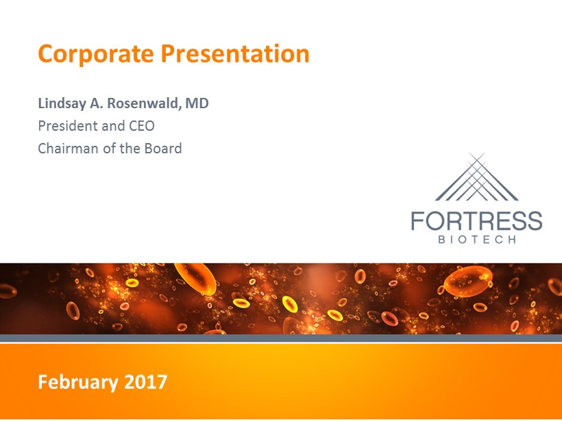 Proprietary Materials Corporate Presentation Lindsay A. Rosenwald , MD President and CEO Chairman of the Board February 2017