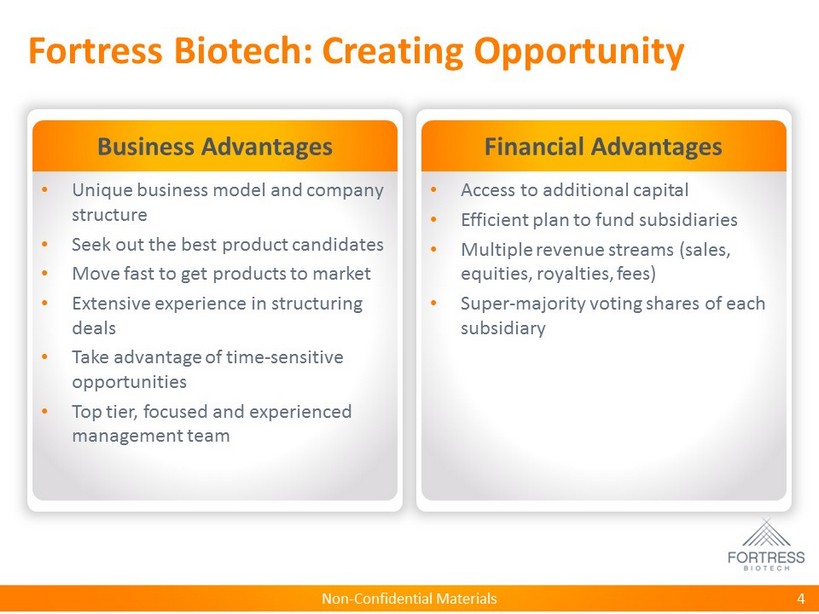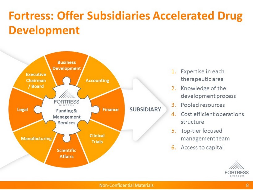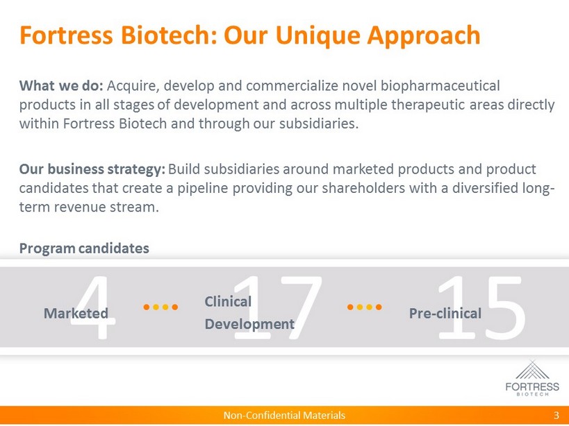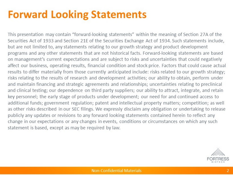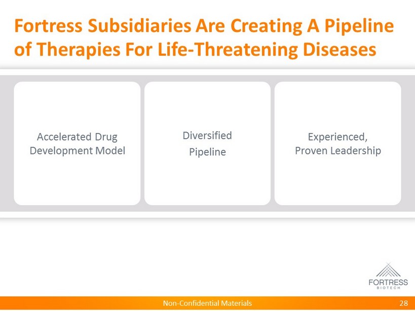 Non - Confidential Materials Accelerated Drug Development Model Fortress Subsidiaries Are Creating A Pipeline of Therapies For Life - Threatening Diseases 28 Diversified Pipeline Experienced, Proven Leadership